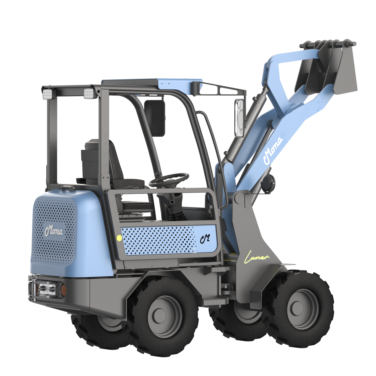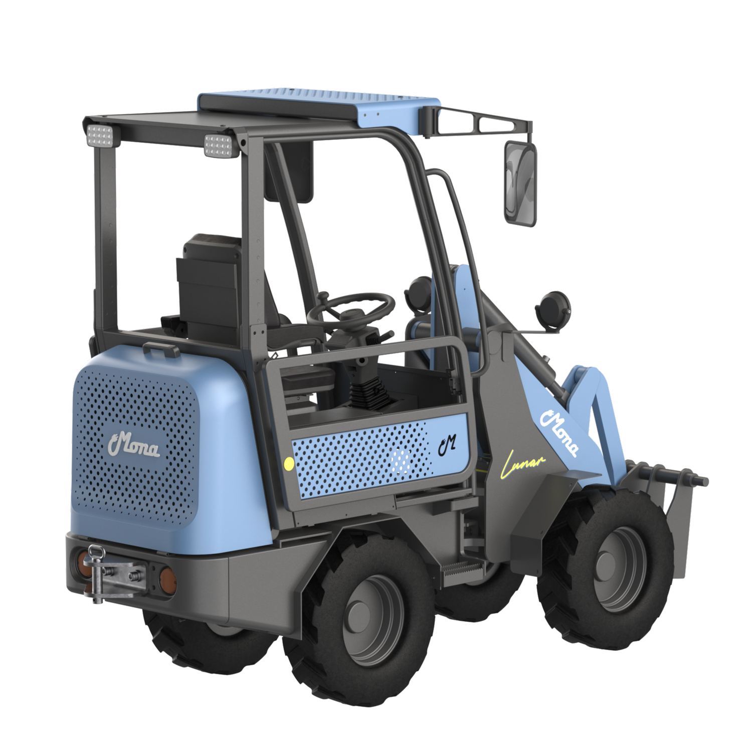 Der vollelektrische MONA Lunar Lader kommt serienmäßig im modernen Farbton CLEAR SKY BLUE.
