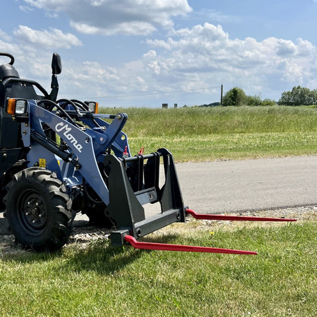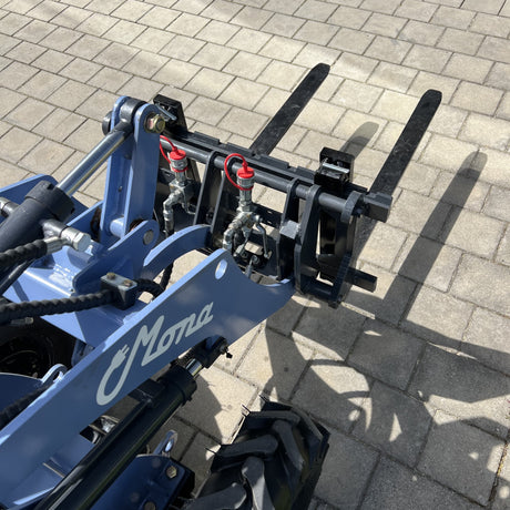 Die kompakte, besonders leise und emissionsfreie Maschine MONA Lunar mit 700 kg Hubkraft eignet sich durch den extra großen und robusten LiFePO Akku für den Einsatz im Stall.