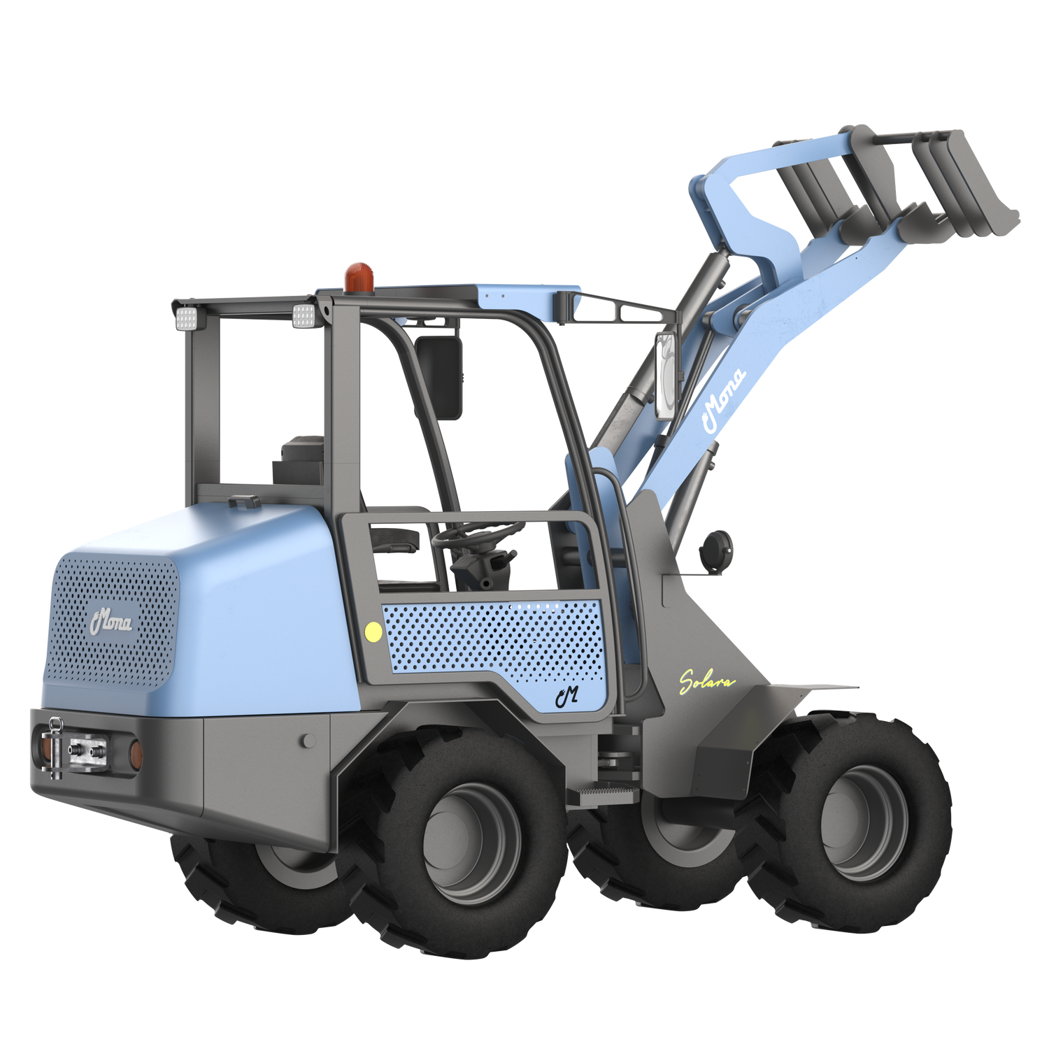 MONA Solara vollelektrischer Radlader mit 1,5 t Hubkraft.