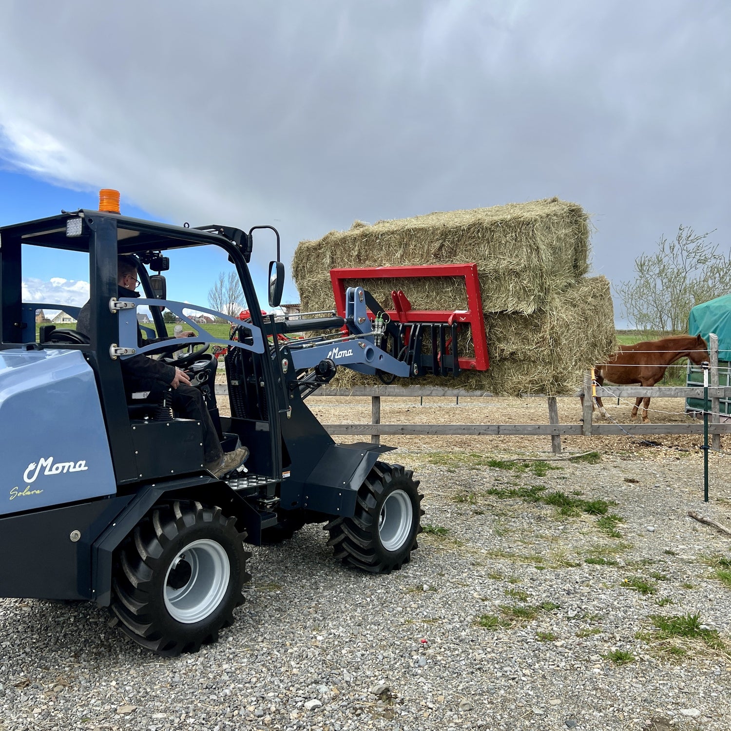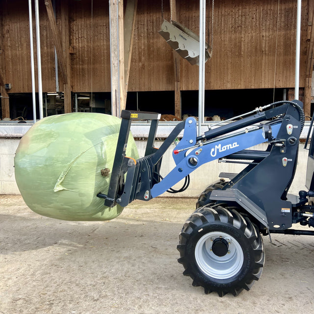 La broche à balles est équipée du support standardisé EURO , ce qui signifie qu'elle peut être connectée facilement et rapidement au chargeur agricole MONA et à de nombreuses autres machines. Cela permet de gagner un temps précieux et de rendre l'utilisation encore plus flexible.