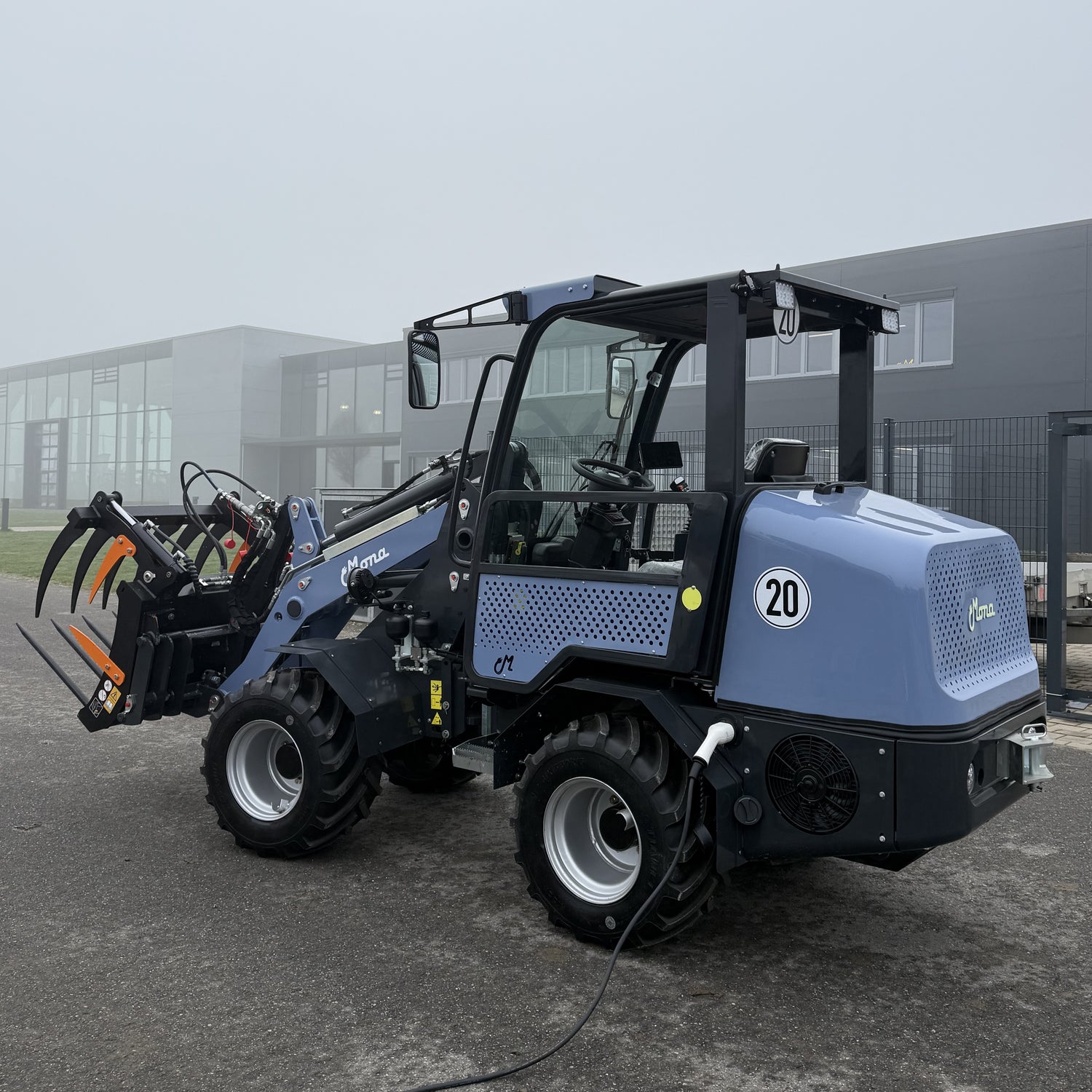 Chargeuse sur pneus MONA Solara entièrement électrique avec une capacité de levage de 1,5 t.