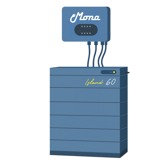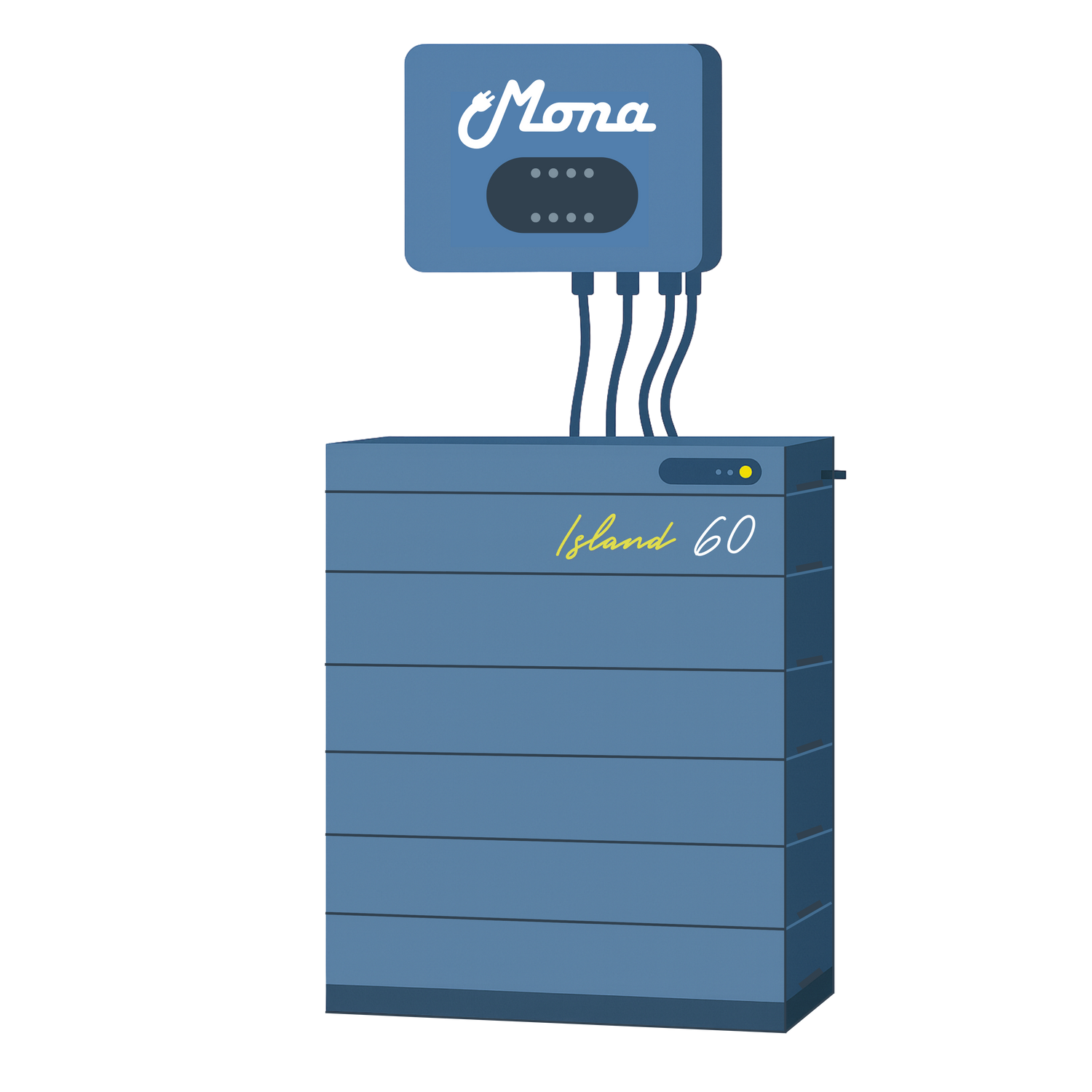 Durch den integrierten Hybrid-Wechselrichter kann MONA Island 60 sowohl im Netzparallelbetrieb als auch im Inselbetrieb eingesetzt werden. In Kombination mit einer Photovoltaikanlage lässt sich überschüssiger Solarstrom zwischenspeichern und bedarfsgerecht abrufen, wodurch die Eigenverbrauchsquote signifikant gesteigert und die Energiekosten langfristig reduziert werden. Der Speicher arbeitet vollständig emissionsfrei und ist mit seiner Schutzklasse IP65 auch für den Außenbereich ausgelegt.