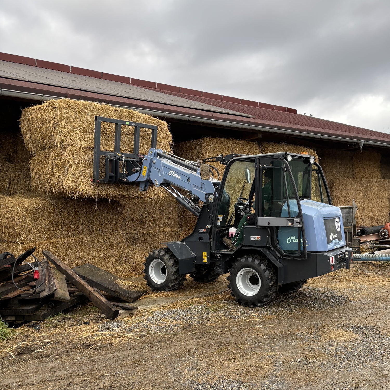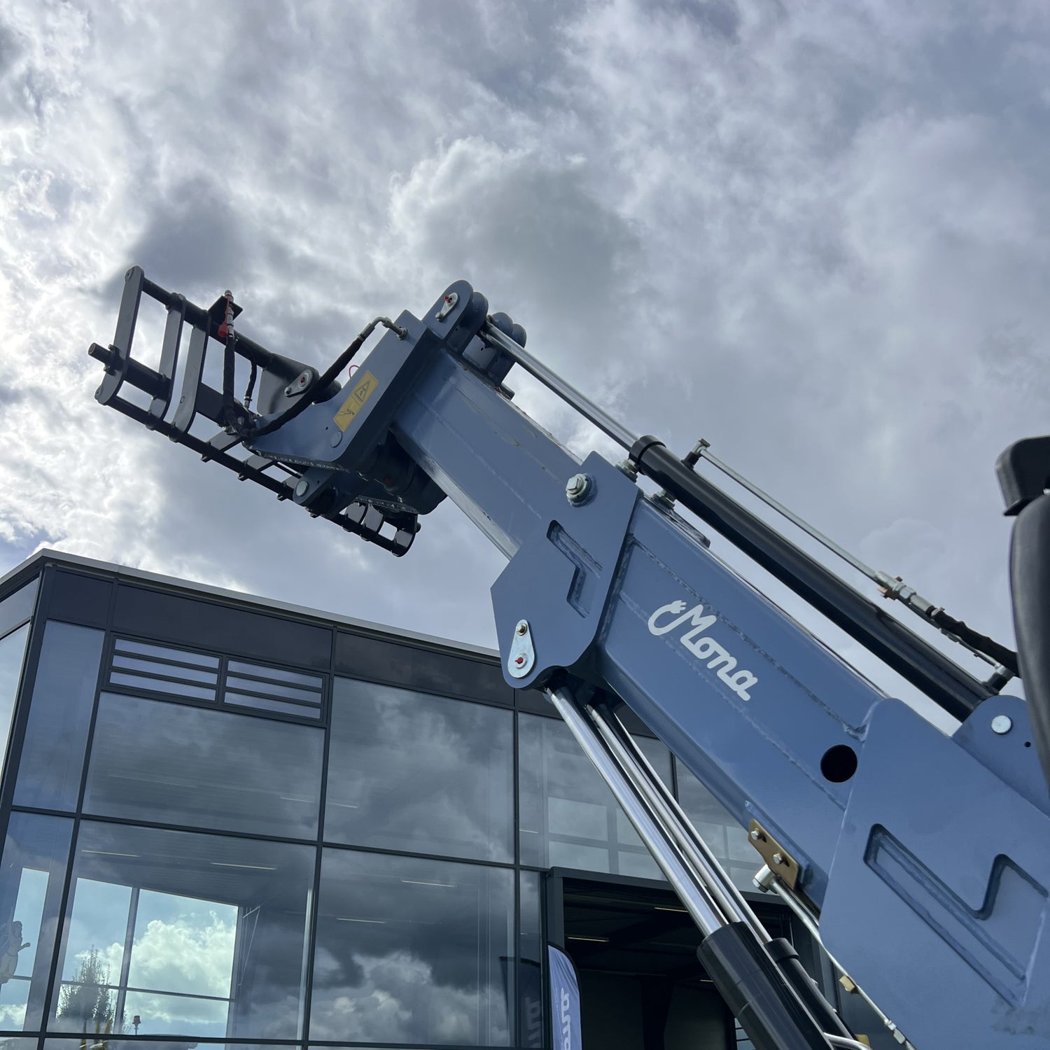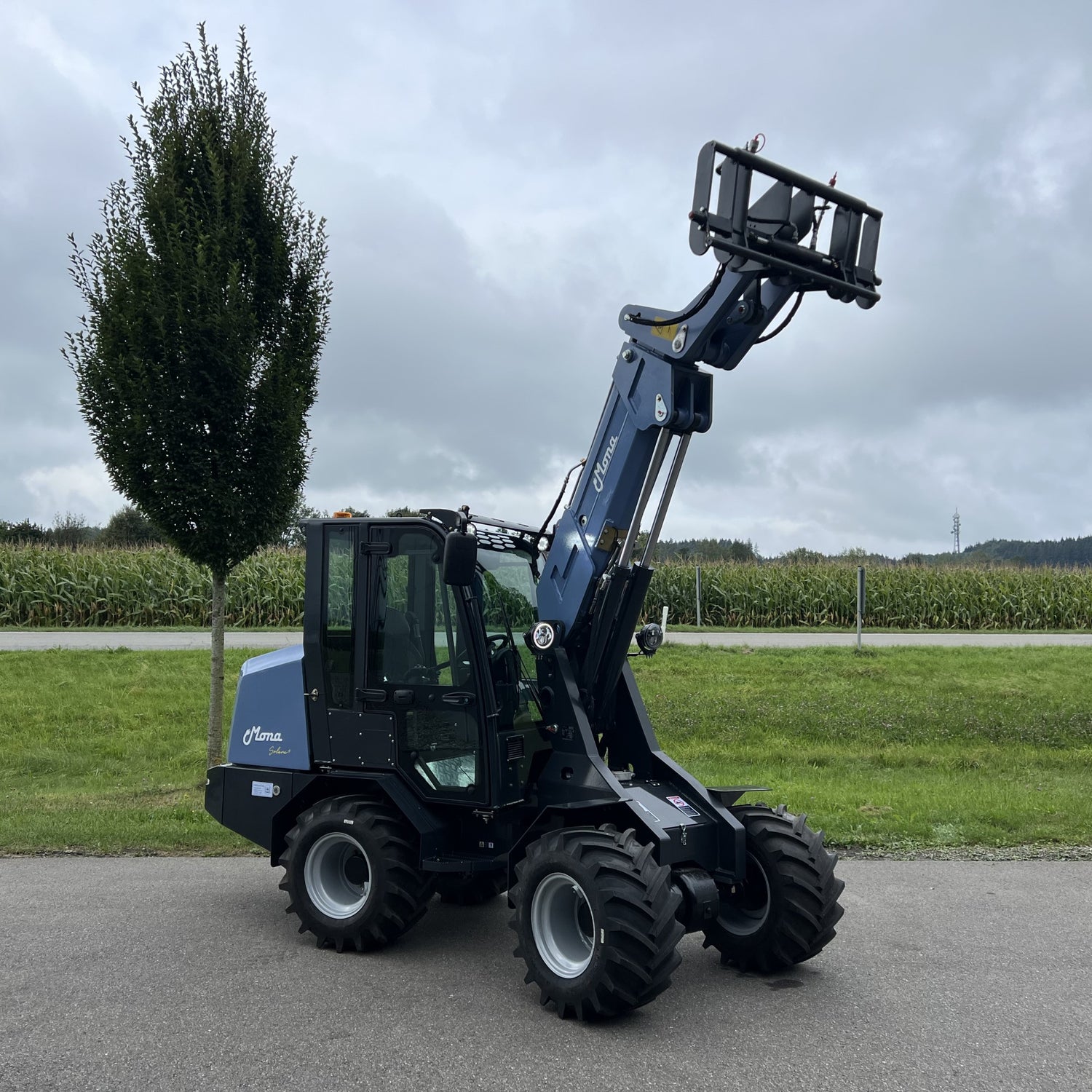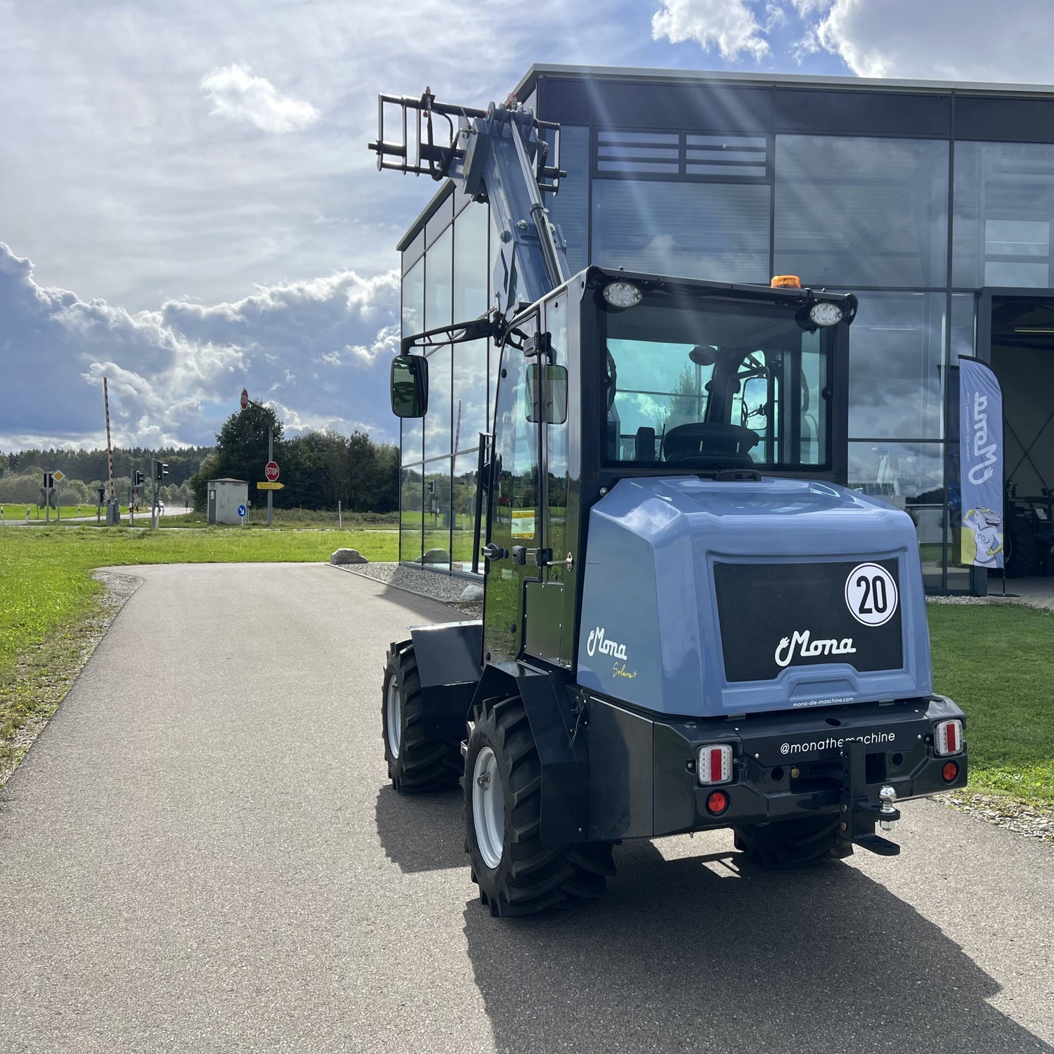 MONA Solara+ vollelektrischer Radlader mit Teleskoparm und 1,3 t Hubkraft.