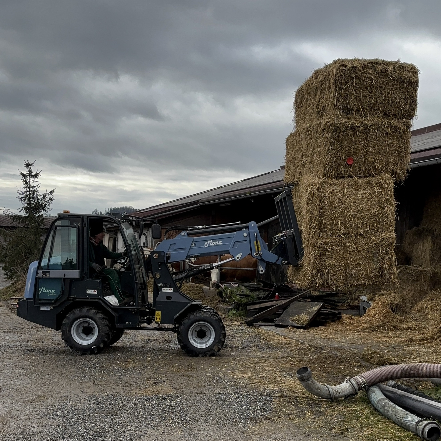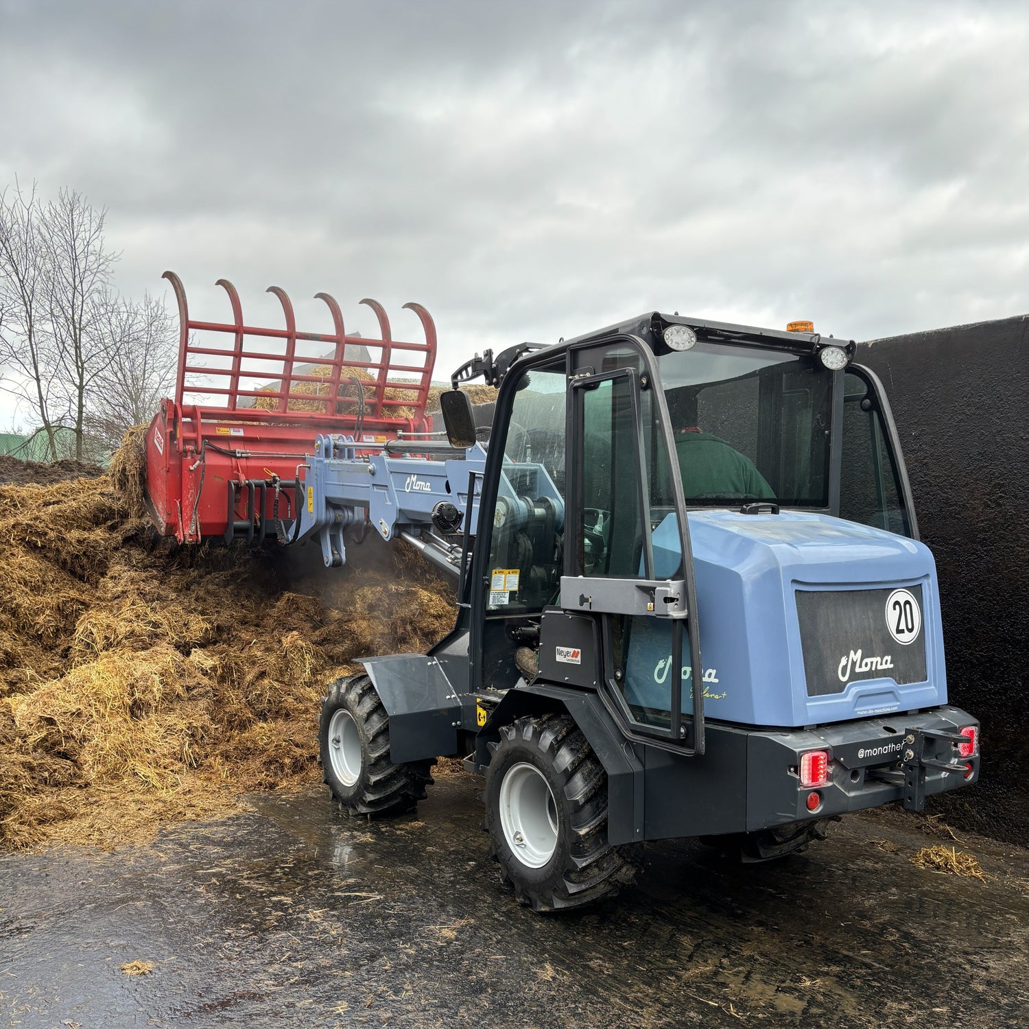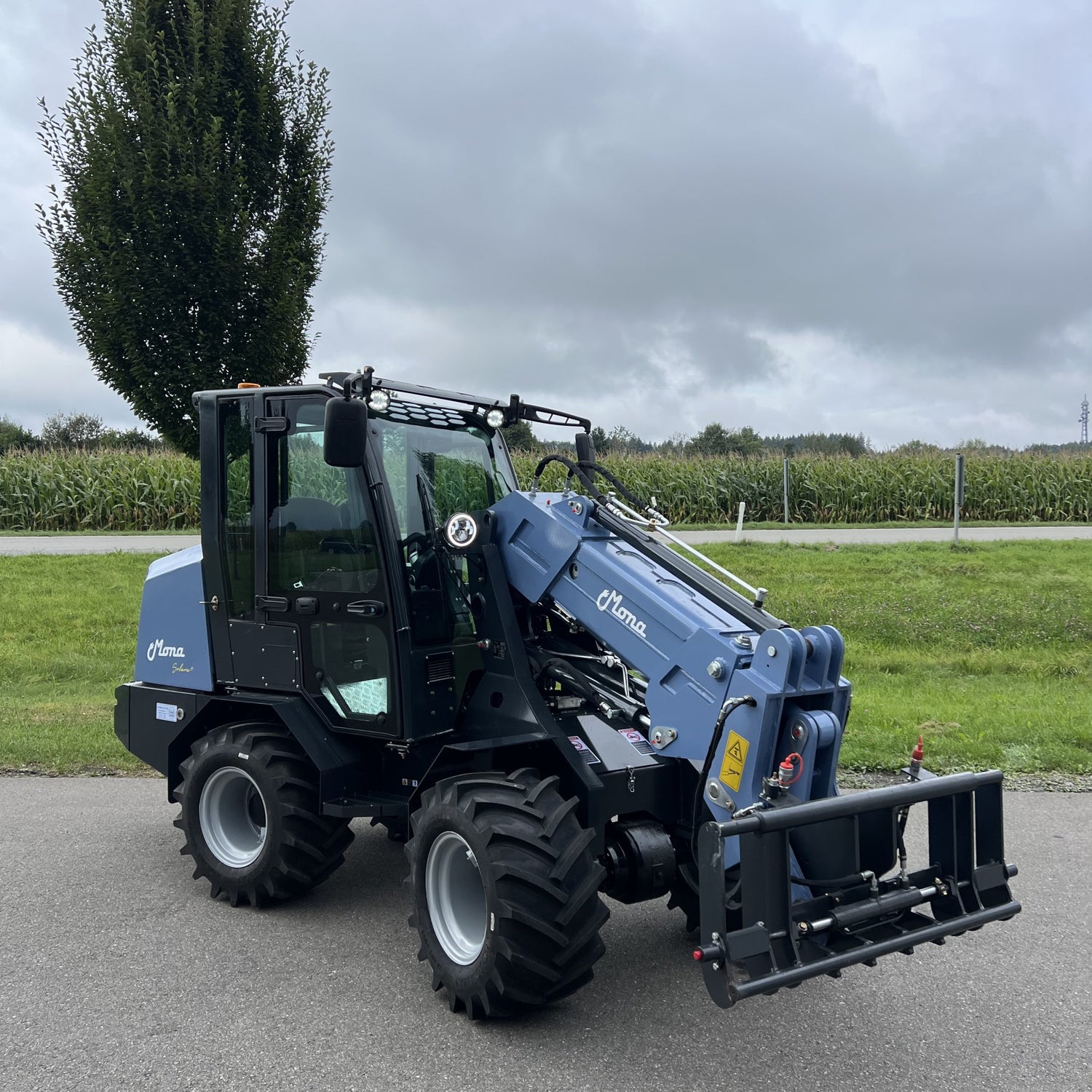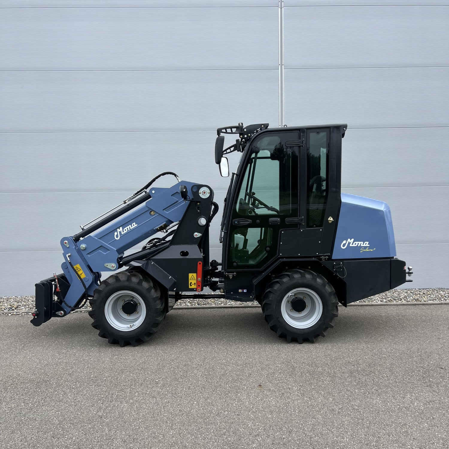 MONA Solara+ vollelektrischer Radlader mit Teleskoparm und 1,3 t Hubkraft.